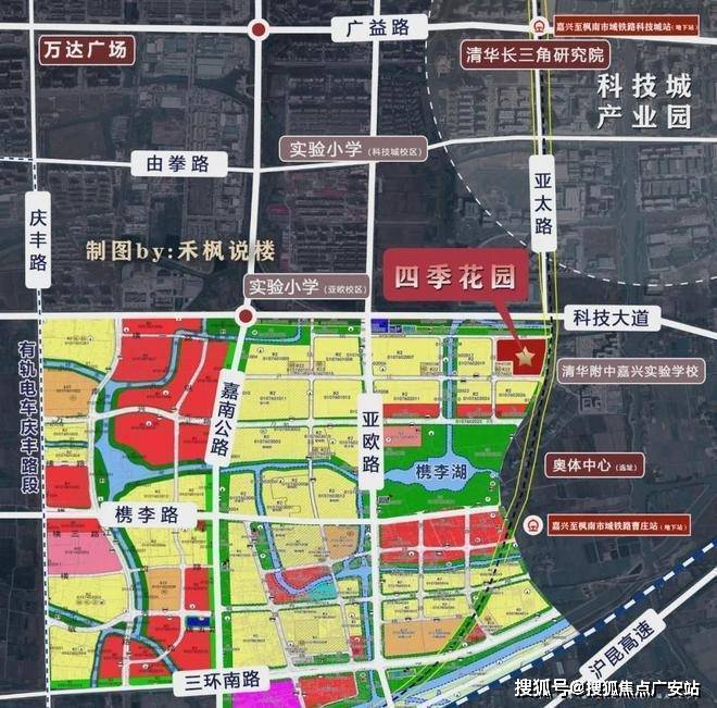 项目西侧,是贯穿整个科技城板块的从干道——亚太,往北连续接科技城财产园嘉兴至枫南市域铁科技城坐。