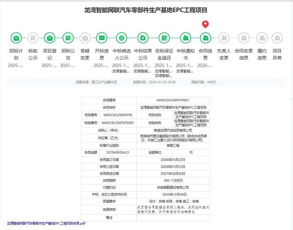 据悉,项目已确定焦点合做方阵容:EPC工程总承包由芜湖城市扶植集团股份无限公司取机械工业第九设想研究院股份无限公司结合衔接,担任项目设想、采购、施工全流程落地;浙江江南工程办理股份无限公司担任全过程办理方,统筹项目监理取全周期办理工做,保障项目高尺度推进。按照规划,将扶植多座出产车间及配套设备,购买高端出产取检测设备,搭建冲压、焊接、涂拆、拆卸等完整出产线万辆高端智能网联电动汽车车身零部件总成的产能规模,产物将笼盖智能座舱布局件、车身轻量化部件等焦点品类,为下逛车企供给一体化零部件处理方案。