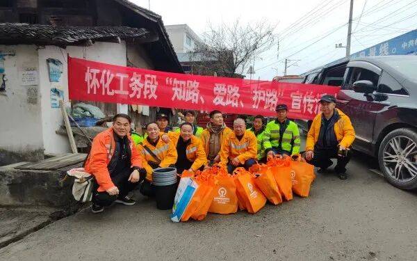 2月6日,怀化工务段关工委、段团委结合组织“五老”陈爱平、杨政新和青年意愿者高淼、樊等11人,前去老区——贵州省铜仁市溪口镇的赶集街道上,开展以“知、爱、护”为从题的外宣传勾当。