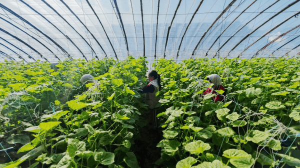 2月7日,北镇市大屯乡关工委组织老农艺师,来到了二台子村蔬菜大棚,向青年农人教授暖棚黄瓜栽培新手艺。